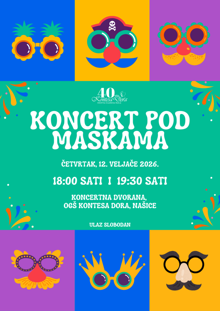 Najava- Koncert pod maskama Poštovani roditelji i sugrađani,pozivamo vas na Koncert pod maskama koji će…