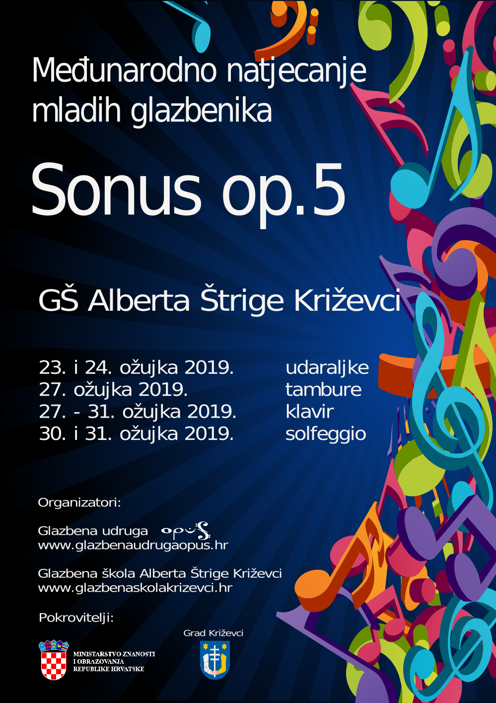 U Križevcima, na Međunarodnom natjecanju mladih glazbenika Sonus opus 5, naši su se učenici uspješno predstavili u dvije discipline: solo glasovir i solo bisernica uz pratnju glasovira. Natjecanje se održalo 27. ožujka 2019. u Glazbenoj školi Alberta Štrige.