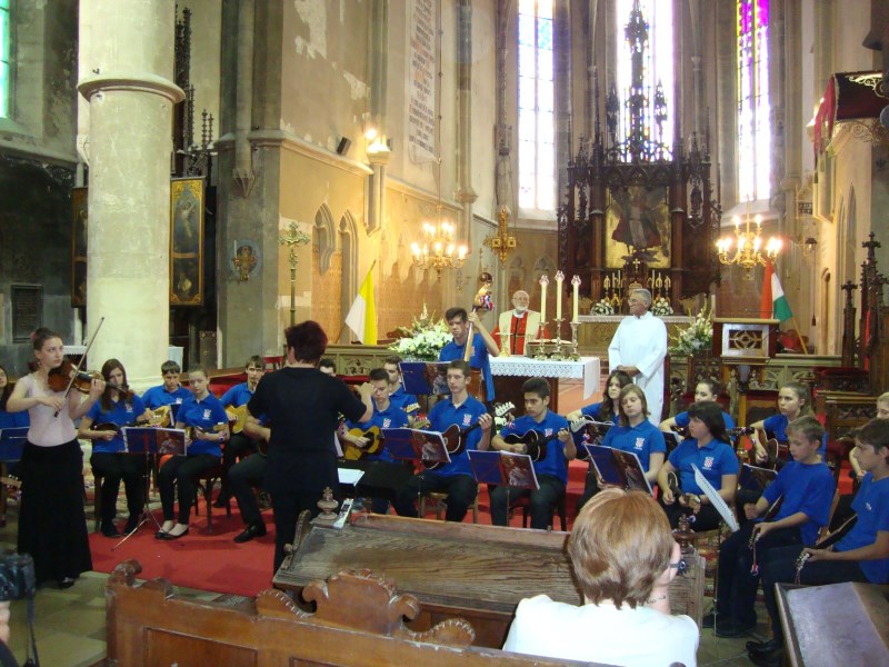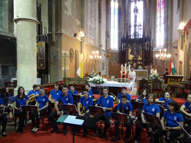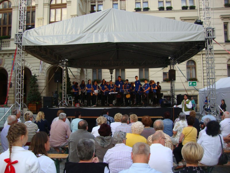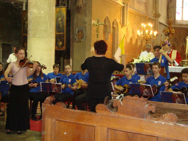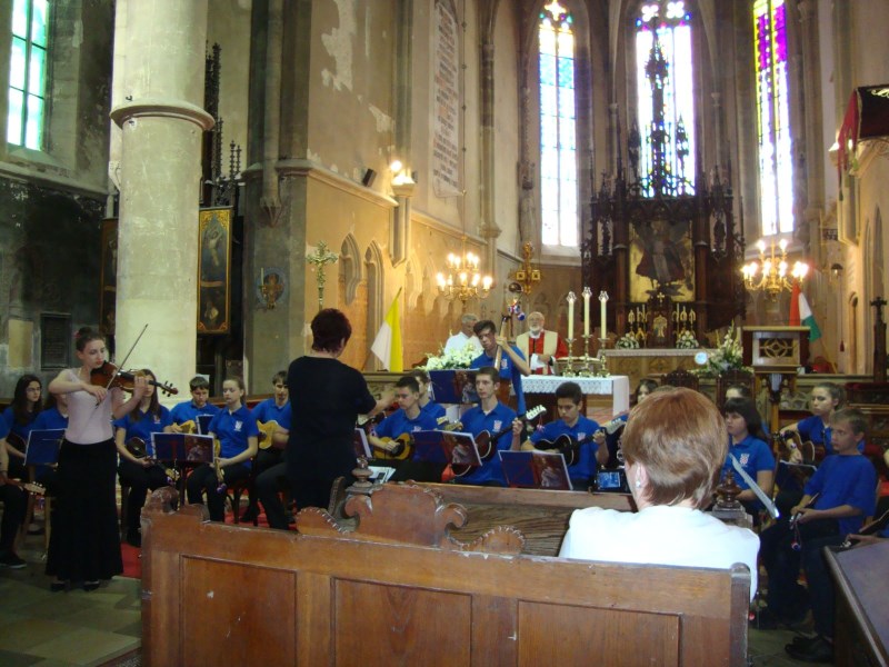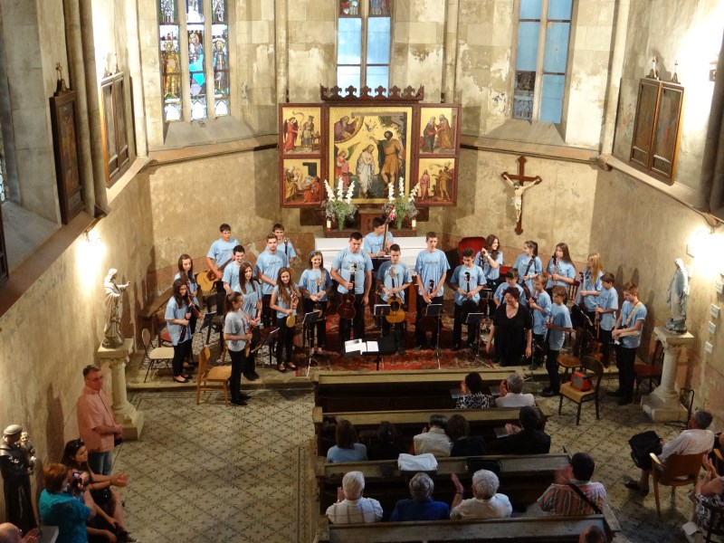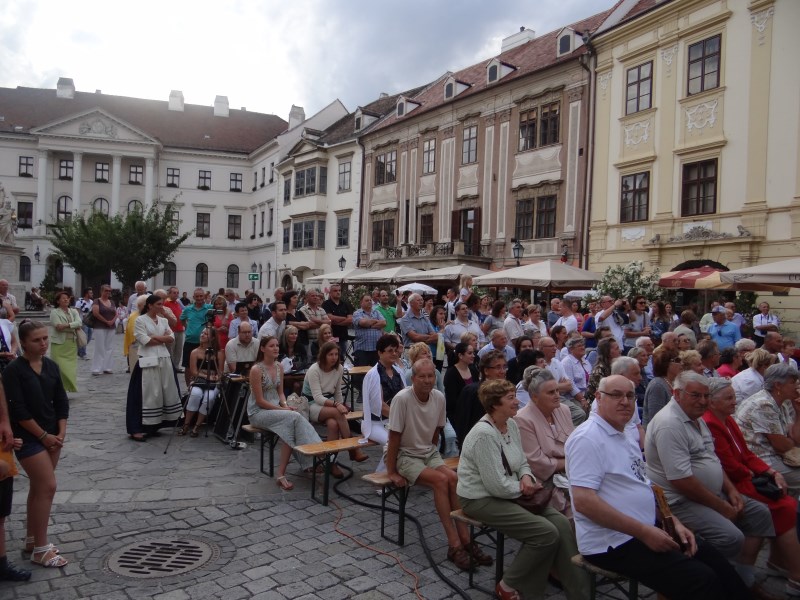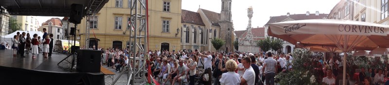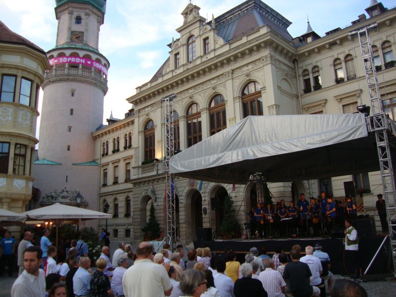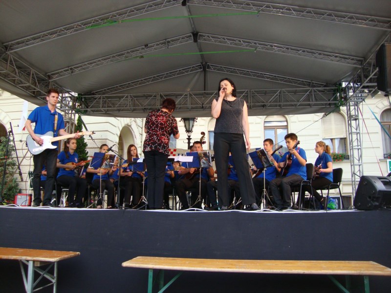 Završna gala svečanost XII. hrvatskih šopronskih dana tradicionalno je upriličena na glavnom trgu uz nastupe folklornih skupina i tamburaških sastava. Ponosni smo što je naš tamburaški orkestar Škole i Društva uz vokalne i instrumentalne bravure atraktivnih solista imao čast muzicirati na svečanom zatvaranju festivala. Solisti su bili: sopranistica Antonia Dunjko-Zagreb, naši vrijedni djelatnici škole, violinistica Dubravka Balent i profesorica solfeggia Kristine Brkić, njezina kćerka Donata, nekadašnji učenika škole Krunoslav Mihaljević i Stela Javorček uz sigurne dirigentske ruke profesorice Marine Kopri. Kao i prethodna dva glazbena sadržaja i ovaj je posebnim vanprogramskim skladbama, na bis, upotpunio želje oduševljenih posjetitelja!