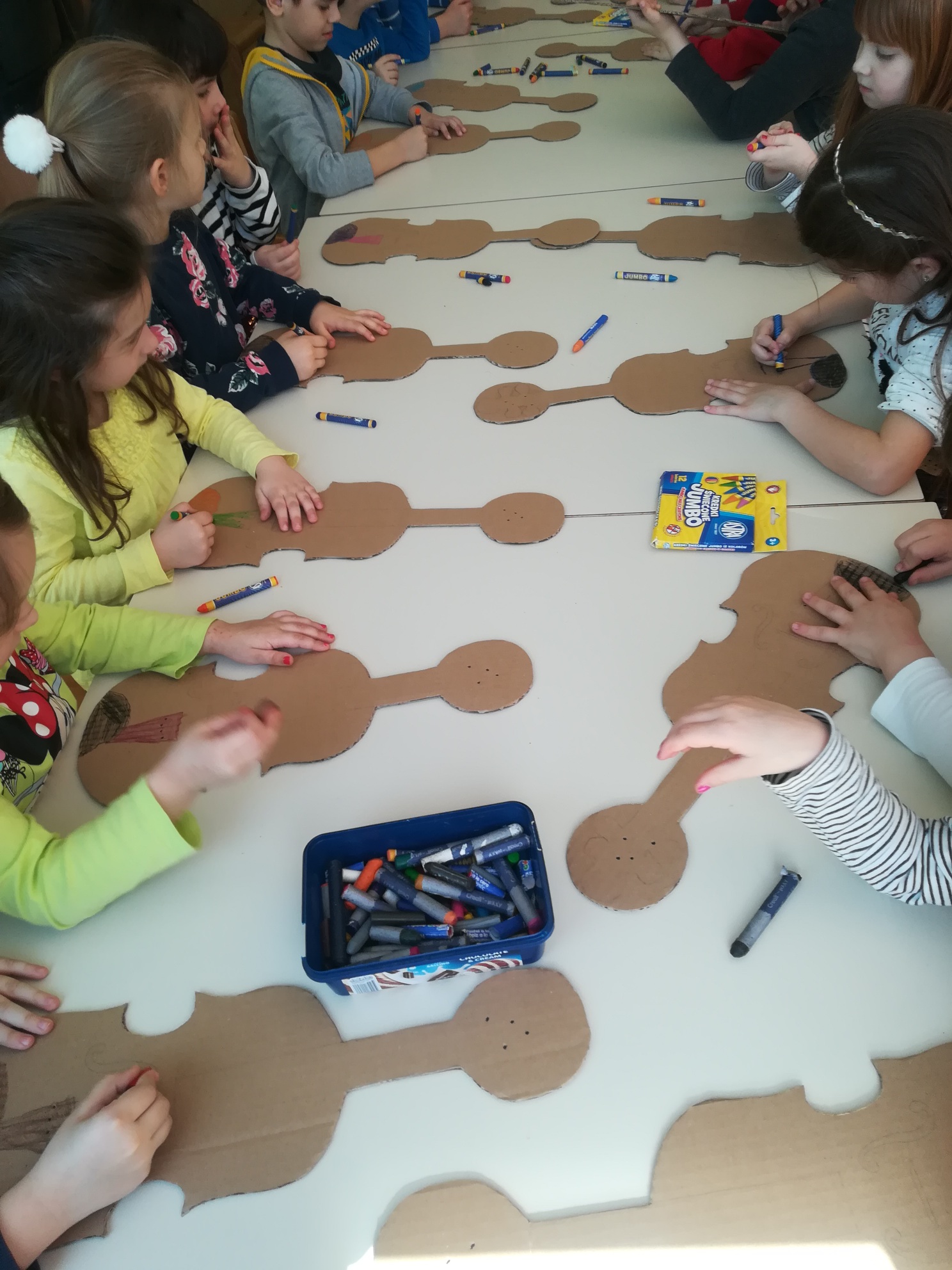 Prvo su slušali zvuke violine, različite kompozicije i pjesmice koje je izvodila profesorica Višnja i njena učenica Josipa Kljajić. Uslijedilo je učenje dijelova violine i sama izrada violina od kartona. Svaki polaznik provukao je žice od vune te maštovito oslikao dijelove u bojama po svom izboru. Naposljetku su “zasvirali” s improviziranim gudalom, šibom.