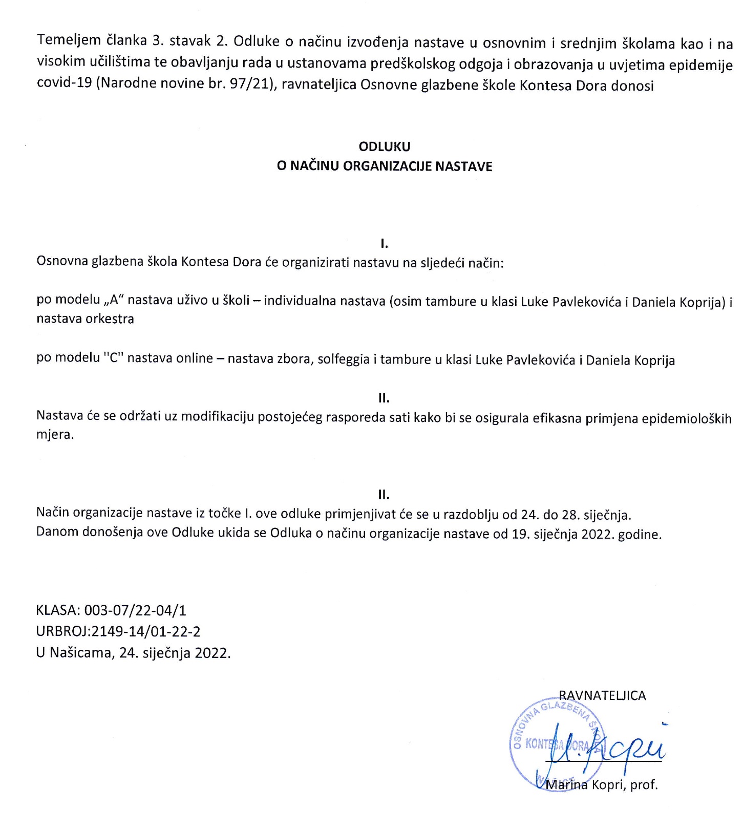 Odluka o imenovanju ravnateljice OGŠ Kontesa Dora Posted byVedran Borjan 11/02/2022 0 Share: Related Articles Ivana kod Dore Odluka o načinu organizacije nastave Božićni koncert Lidije Horvat Dunjko i Marija Čopora Poziv na Dan glazbene škole – koncerti Koncert pod maskama 9. UČENICI NUO CHENG PRVA NAGRADA NA ONLINE NATJECANJU „GOLDEN PIANO TALENTS“