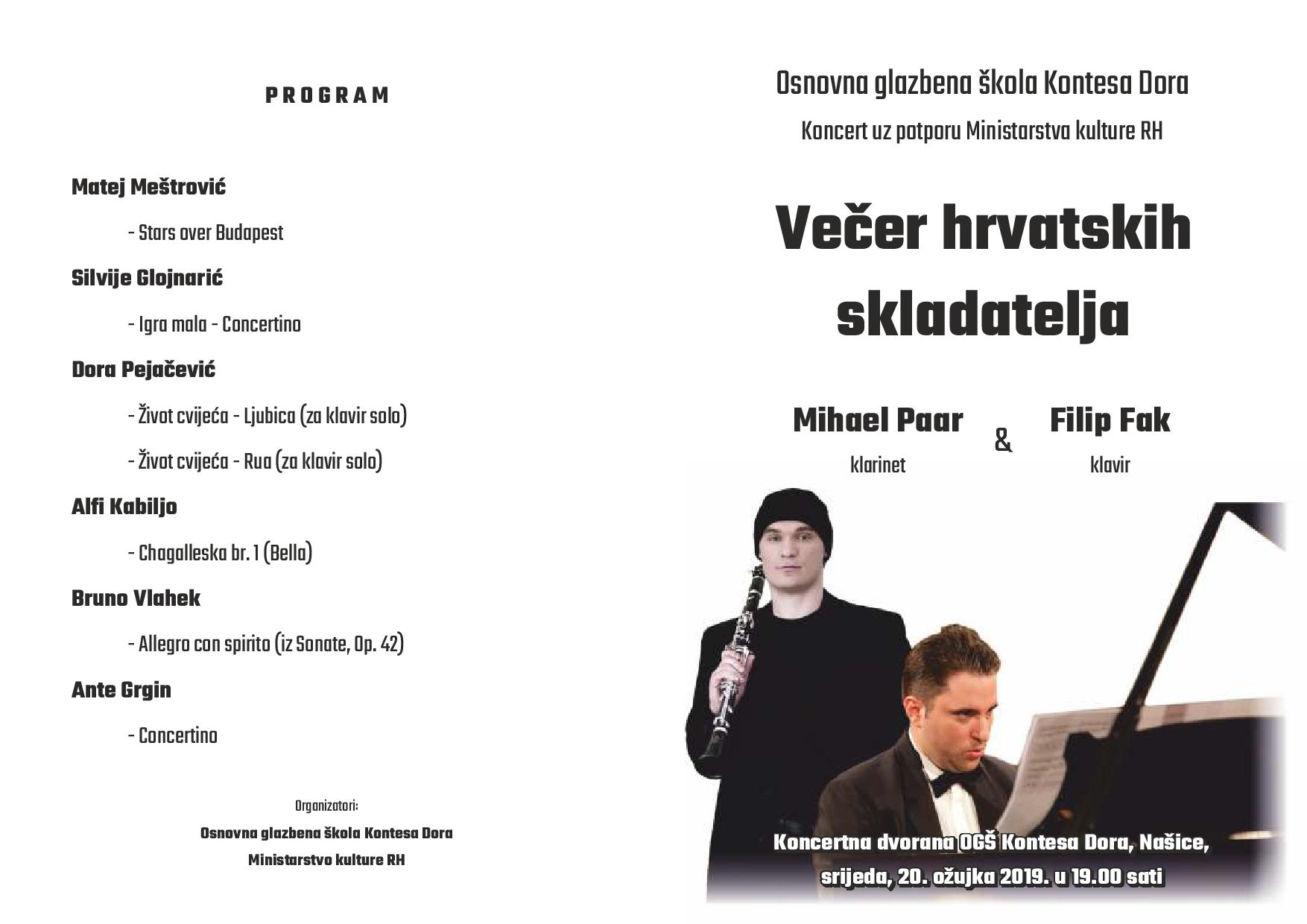Poziv na koncert – Večer hrvatskih skladatelja